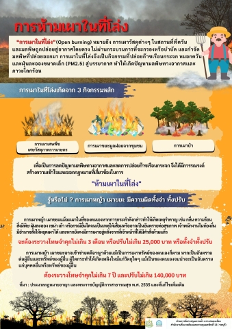 รายละเอียด : พื่อเป็นการป้องกันและแก้ไขปัญหาไฟป่า หมอกควัน และฝุ่นละอองขนาดเล็ก (PM2.5) ปี 2566 จึงขอให้ประชาชนเข้ามามีส่วนร่วมในการป้องกันและแก้ไขปัญหามลพิษทางอากาศ โดยขอความร่วมมืองดการเผาทุกชนิดในพื้นที่ตำบลจันทึก