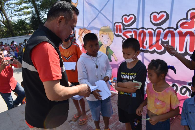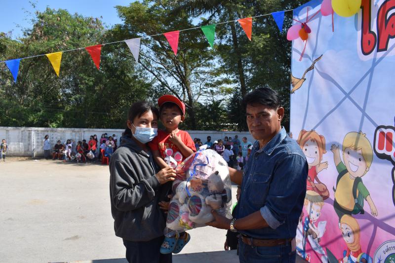 พร้อมมอบของรางวัล และสิ่งของต่าง ๆ ใน