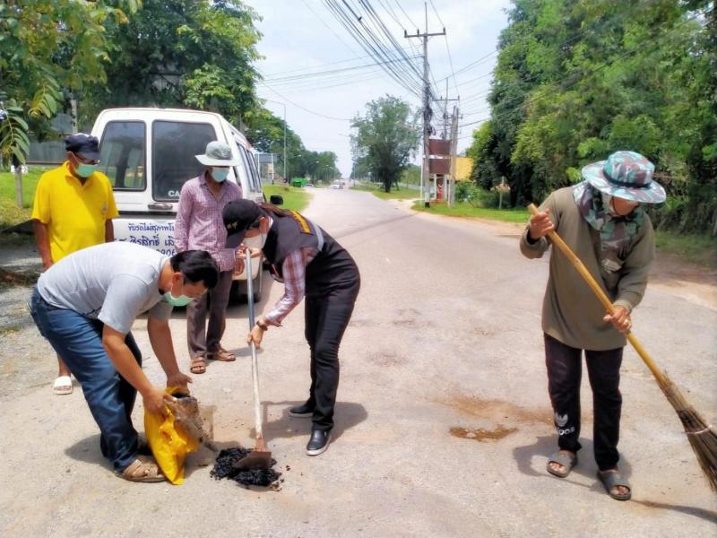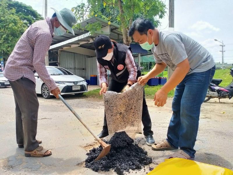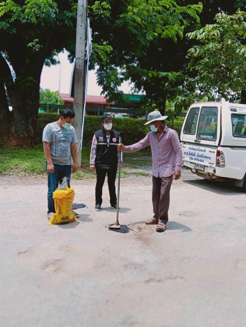 ท่าน ส.จ.นงนุช เลิศด้วยลาภ (ส.จ.นุช) นำยางมะตอยสำเร็จรูปมาซ่อมถนนในหมู่บ้านท่างอย