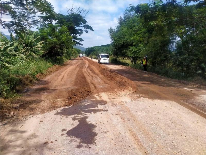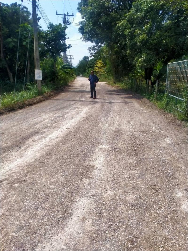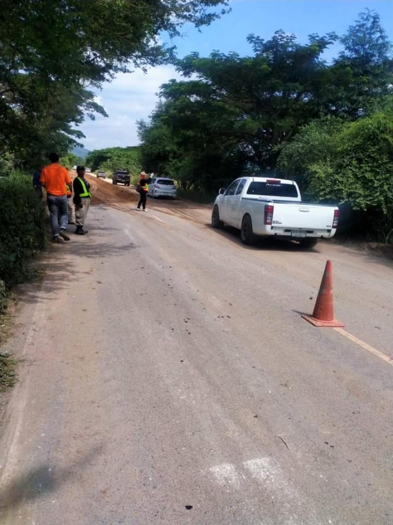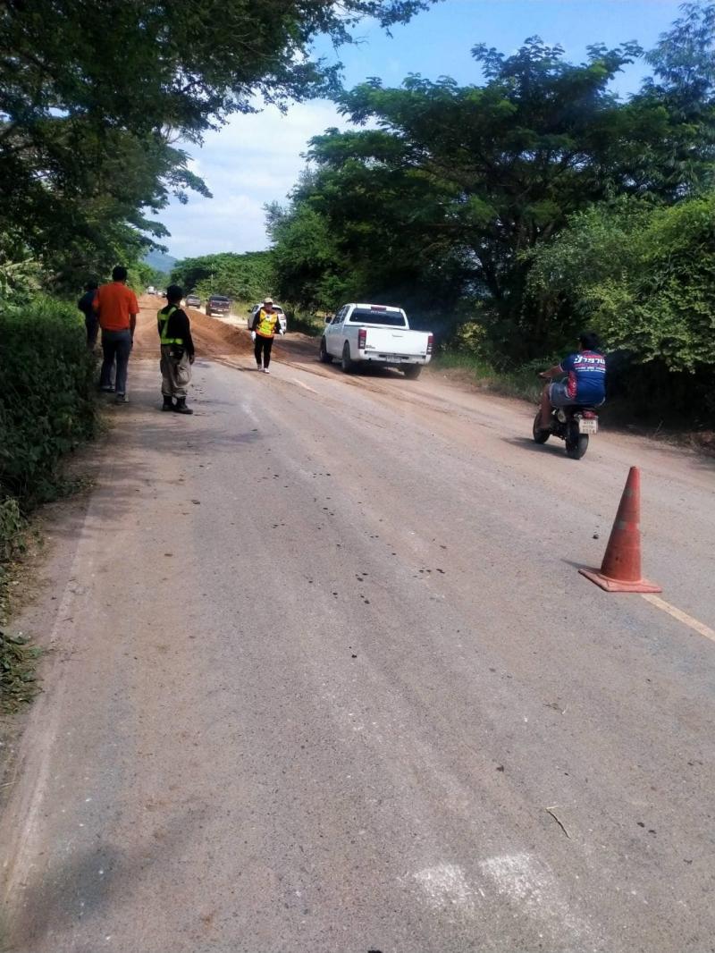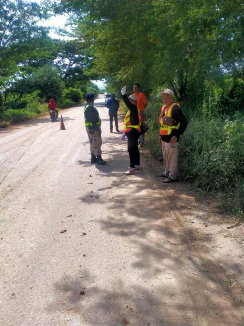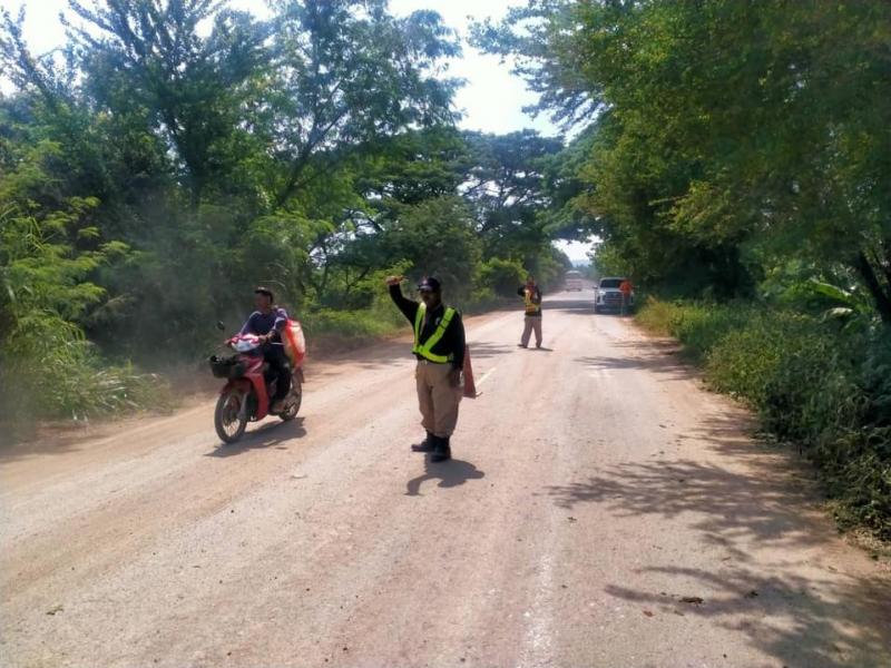 นายกองค์การบริหารส่วนตำบลจันทึก มอบหมายเจ้าหน้าที่กองช่าง อปพร. อำนวยการจราจร เข้าตรวจติดตามการก่อสร้างถนนแอสฟัลท์ติกคอนกรีต