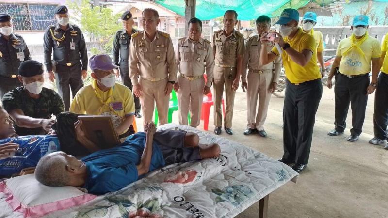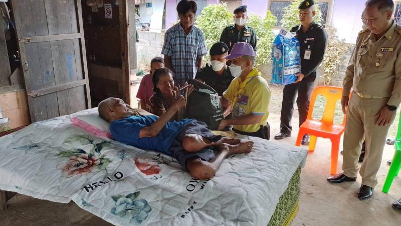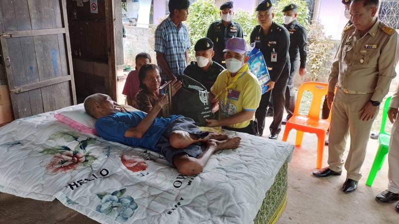 ร่วมต้อนรับนายทหารจากกรมพระราชวังและนายทหารจากกรมพลาธิการทหารบก ได้นำถุงยังชีพพระราชทานมอบให้กับผู้ป่วยติดเตียง 2 ท่าน ณ บ้านท่างอย หมู่ 13