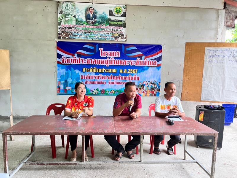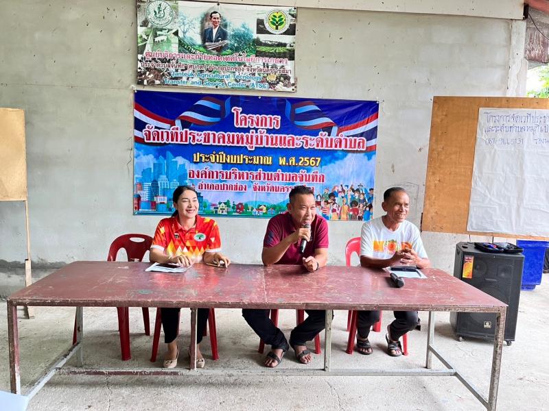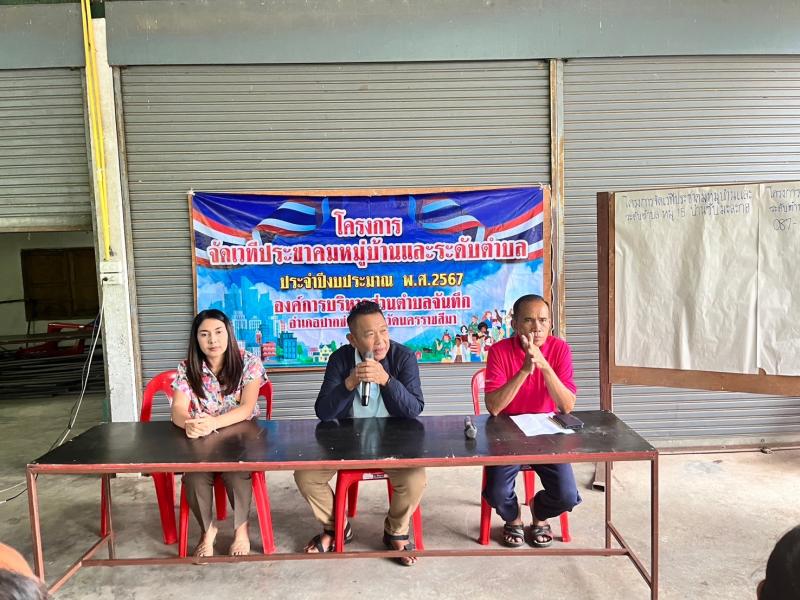 รายละเอียด : นายสมปอง รอดตุ่น นายกองค์การบริหารส่วนตำบลจันทึก พร้อมคณะผู้บริหาร องค์การบริหารส่วนตำบลจันทึก จัดโครงการเวทีประชาคมระดับหมู่บ้านและระดับตำบล ประจำปีงบประมาณ พ.ศ.2567 "เข้าใจ เข้าถึง พัฒนา" ทั้ง 22 หมู่บ้านภายในตำบลจันทึก ระหว่างวันที่ 7 - 24 พฤษภาคม 2567 เพื่อเปิดโอกาสให้ประชาชนได้แสดงความคิดเห็น เสนอปัญหาและความต้องการโครงการหรือกิจกรรมเสนอเข้าบรรจุใน (ร่าง) แผนพัฒนาท้องถิ่น (2566-2570) กรณีเพิ่มเติมฯ