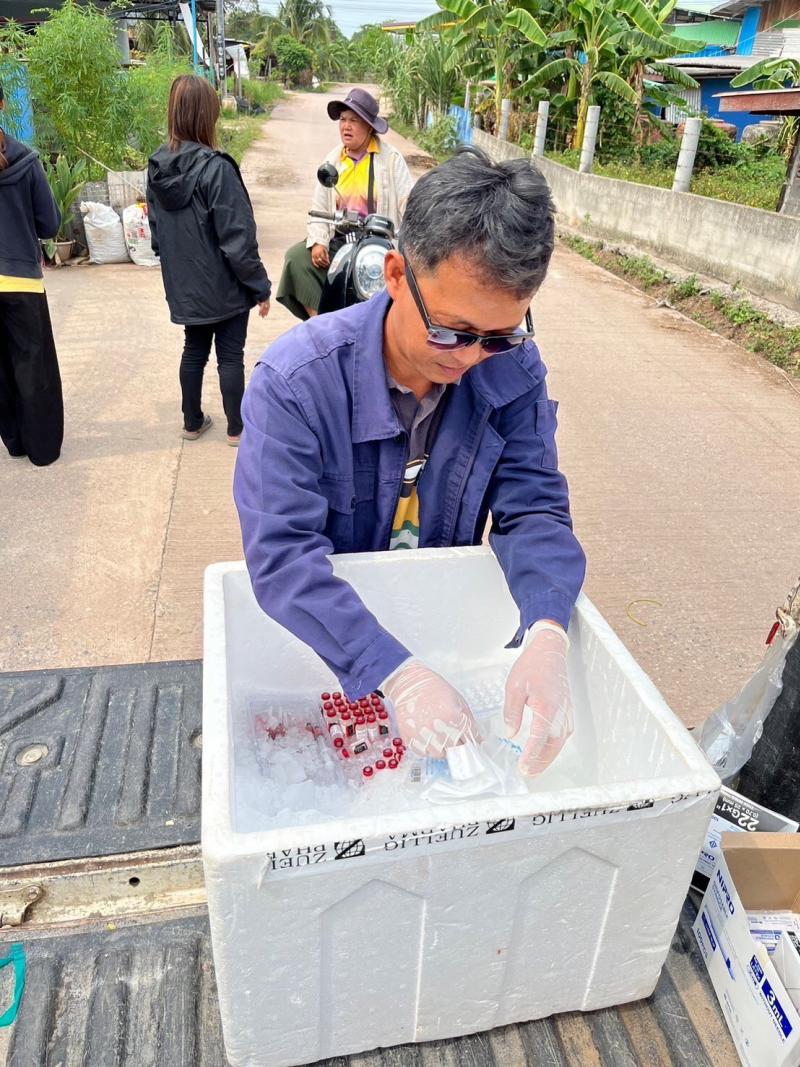 รายละเอียด : งานสาธารณสุขและสิ่งแวดล้อม สำนักปลัด จัดโครงการฉีดวัคซีนโรคพิษสุนัขบ้า ประจำปีงบประมาณ 2566 ตามโครงการสัตว์ปลอดโรค คนปลอดภัย จากโรคพิษสุนัขบ้าตามพระปณิธานศาสตราจารย์ คร.สมเด็จพระเจ้าน้องนางเธอ เจ้าฟ้าจุฬาภรณวลัยลักษณ์ อัครราชกุมารี กรมพระศรีสวางควัฒนวรขัตติยราชนารี ทั้งสุนัขและแมวที่มีเจ้าของและไม่มีเจ้าของในเขตพื้นที่องค์การบริหารส่วนตำบลจันทึก จำนวน 22 หมู่บ้าน ระหว่างวันที่ 24 เม.ย.-15 พ.ค.66 เพื่อควบคุมจำนวนพาหะและลดอัตราการแพร่ระบาดของโรคพิษสุนัขบ้า