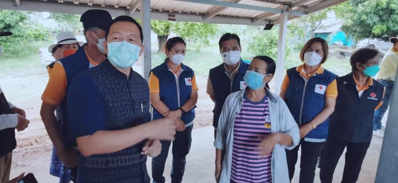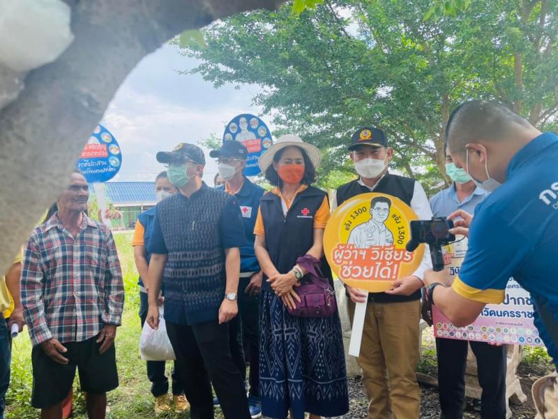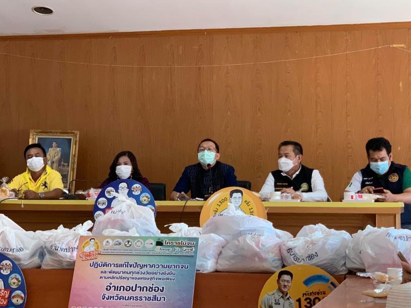 ท่านคณัสชนม์ ศรีเจริญ นายอำเภอปากช่อง/นายกกิ่งกาชาดอำเภอปากช่อง กำนัน ผู้ใหญ่บ้าน ฯลฯ นำถุงยังชีพกาชาดมอบให้แก่ประชาชนผู้ยากไร้ในพื้นที่ตำบลจันทึก