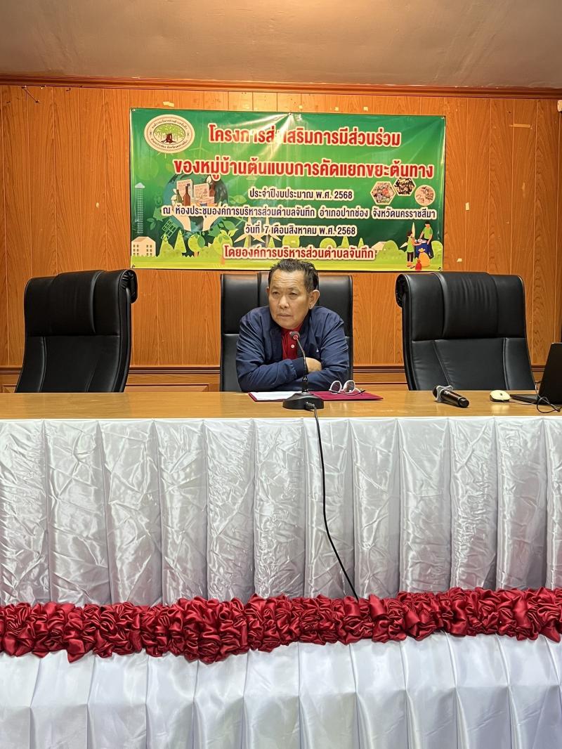 รายละเอียด : นายสมปอง รอดตุ่น นายกองค์การบริหารส่วนตำบลจันทึก เป็นประธานในพิธีเปิดโครงการส่งเสริมการมีส่วนร่วมของหมู่บ้านต้นแบบการคัดแยกขยะต้นทาง ประจำปีงบประมาณ พ.ศ.2568 ณ ห้องประชุมองค์การบริหารส่วนตำบลจันทึก อำเภอปากช่อง จังหวัดนครราชสีมา